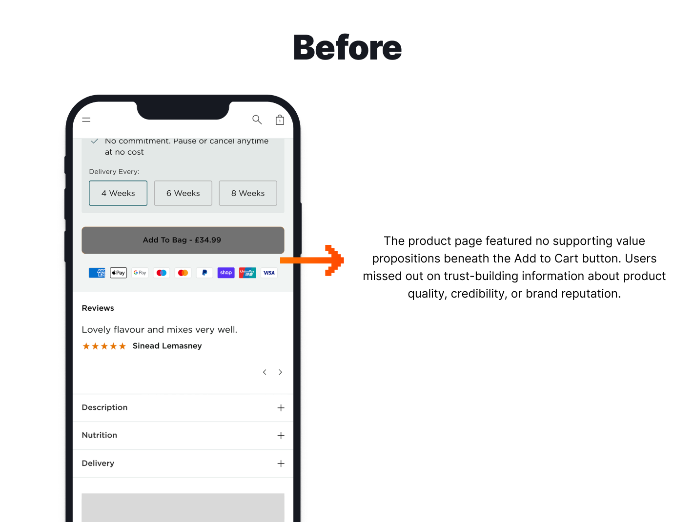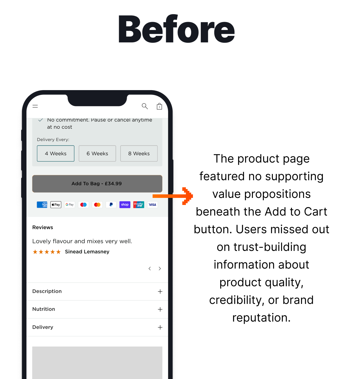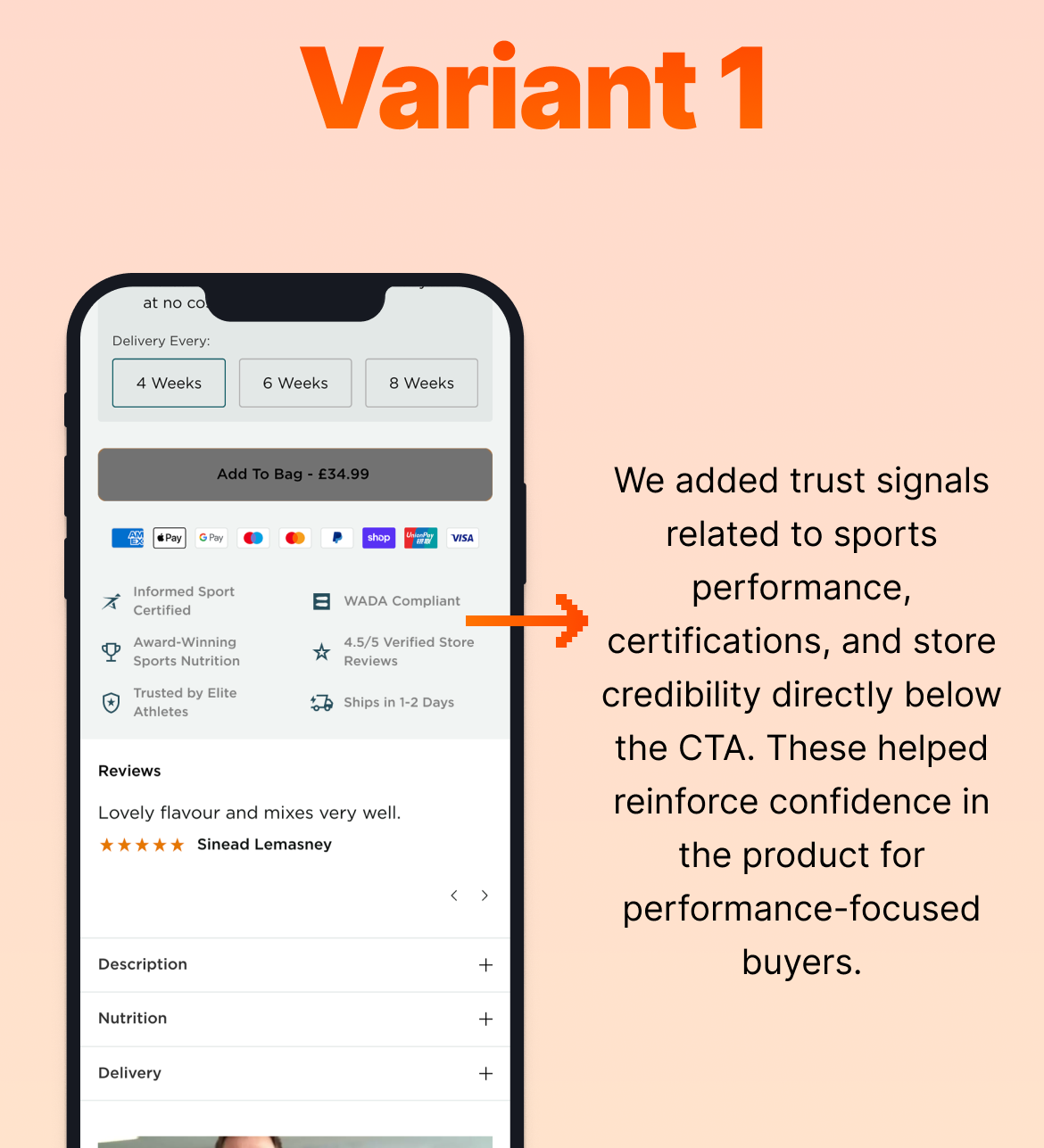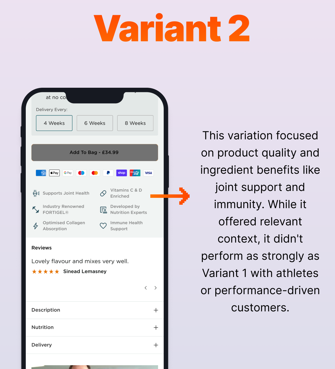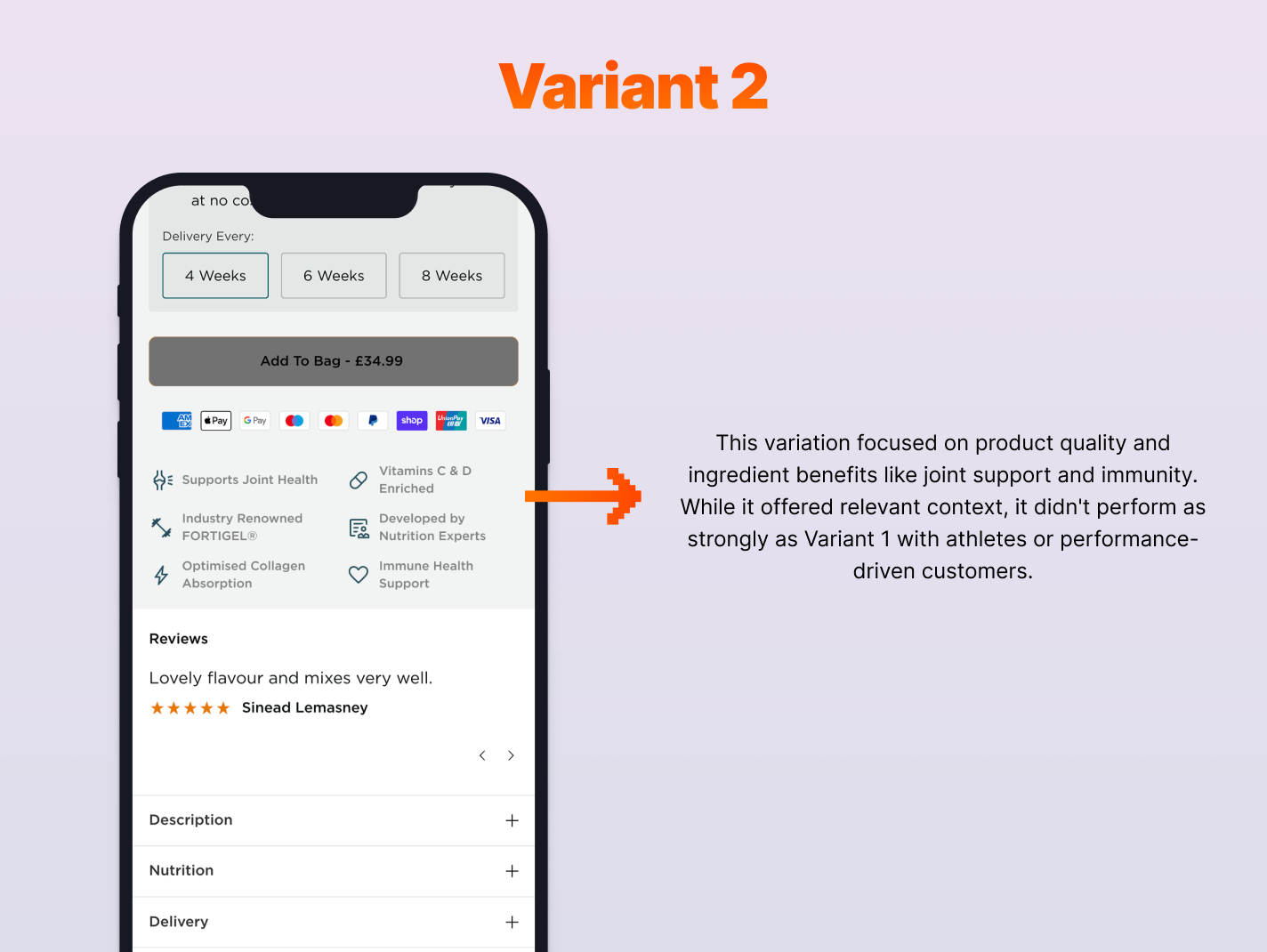 When analysing the results after two weeks, we were most interested to find the vast difference between the two brands in this test. Those in the Ireland brand seemed to be more informed on the brand and products, to such an extent that it caused them not to purchase when viewing these key value propositions, or viewed it as restrictive to viewing the rest of the information they were looking for. Based on this, we reverted to the Original variation for the Ireland brand.