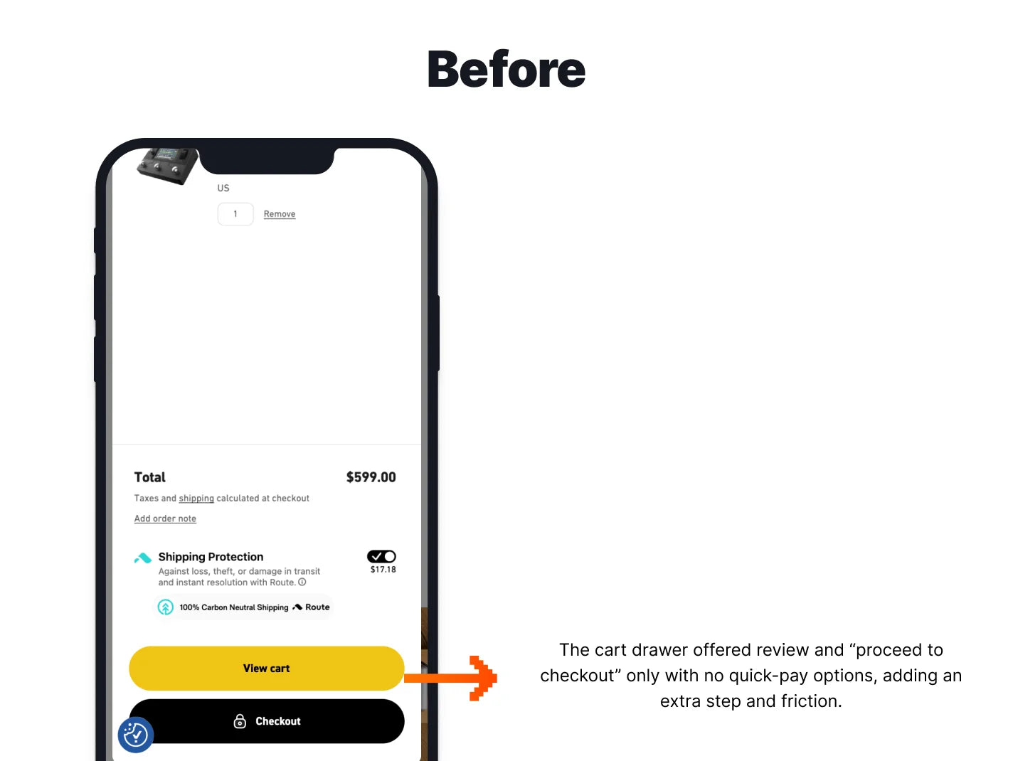 Clicks on checkout buttons and overall engagement improved, showing that customers preferred the clarity and speed of this option. With statistical significance at 95.89%, we recommended permanently implementing express checkout inside the cart drawer to maintain these gains.