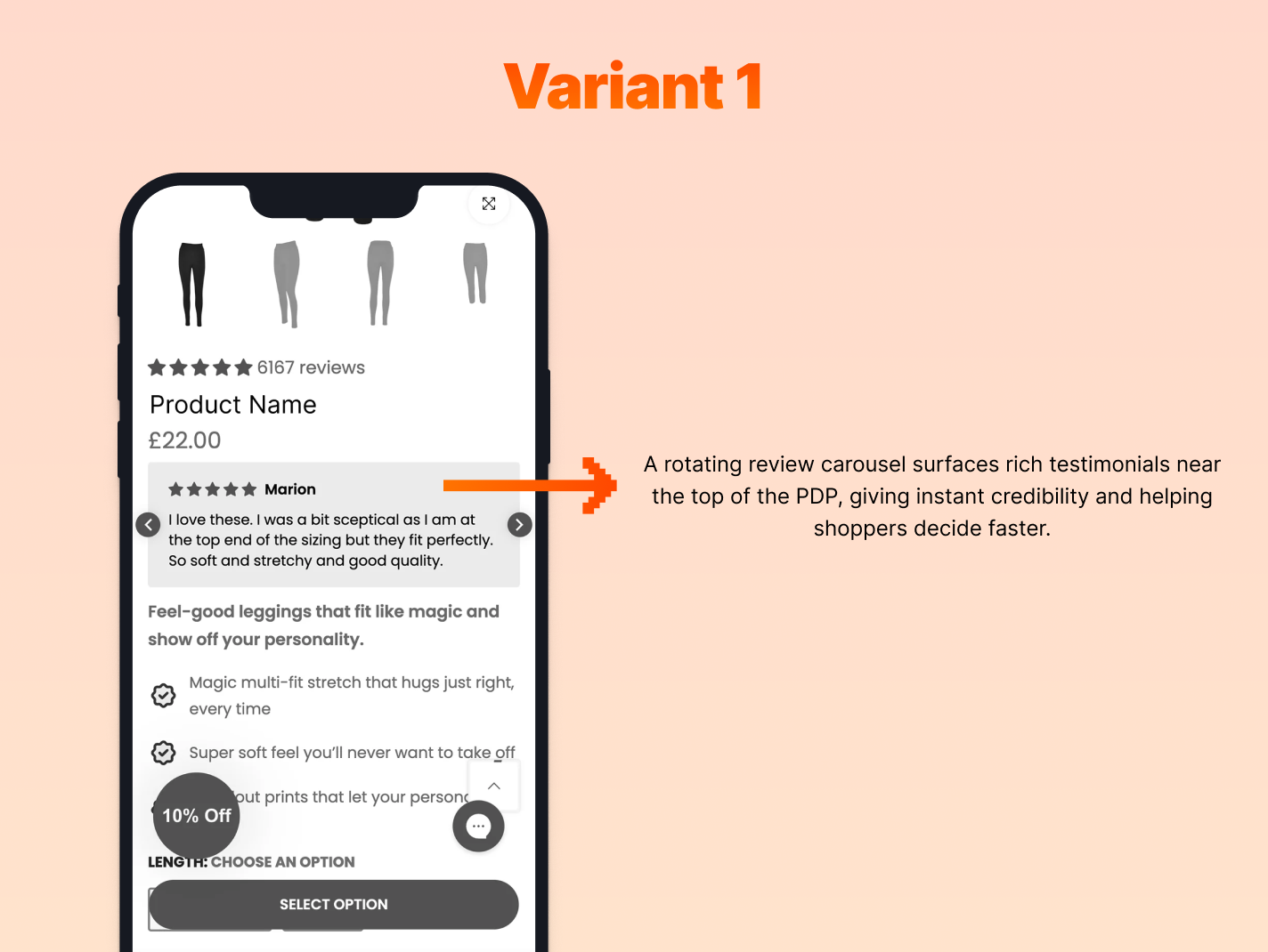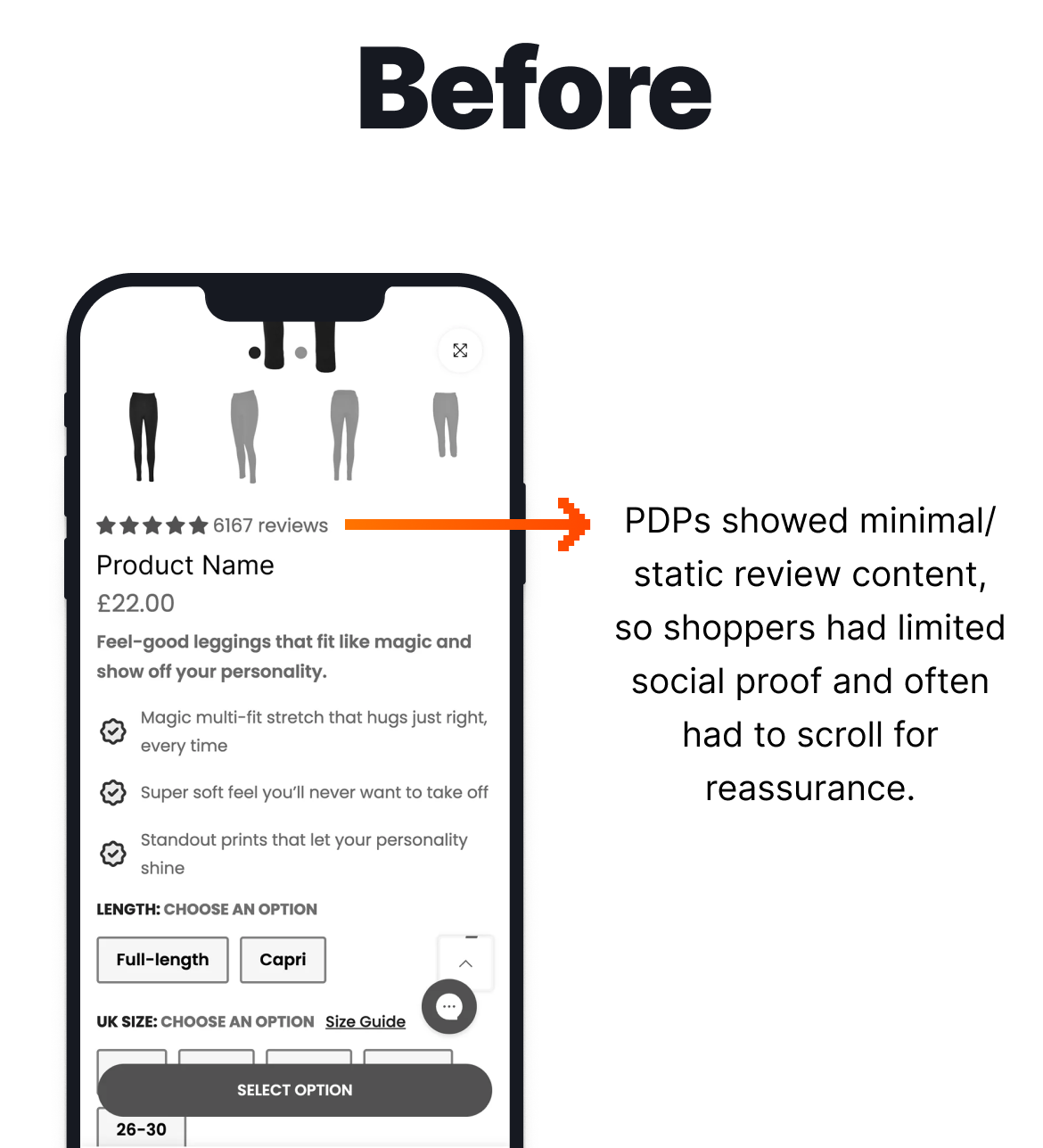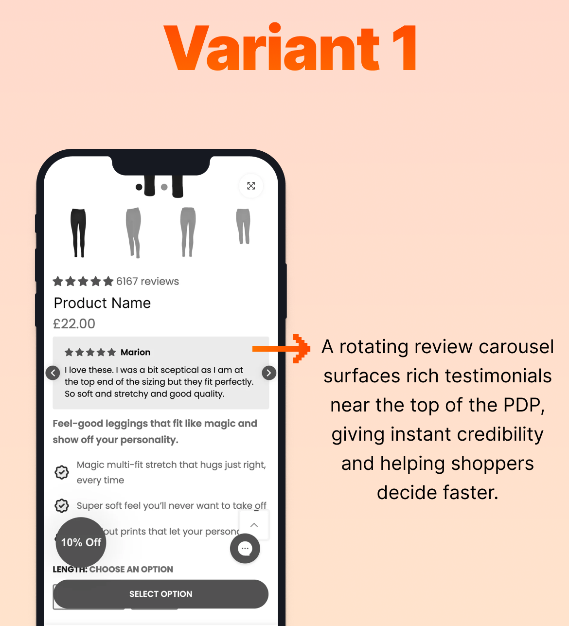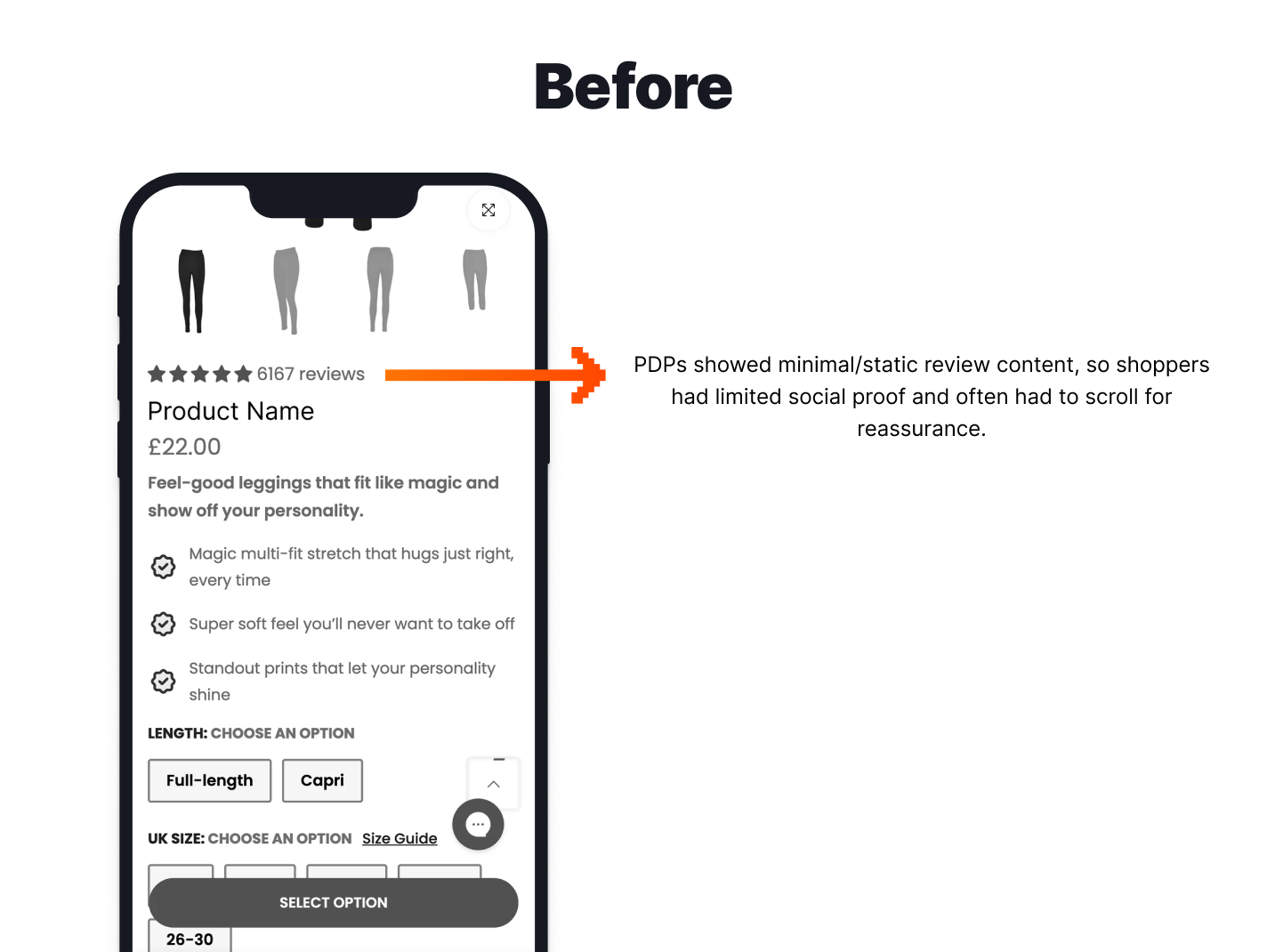 Our strategists identified that the uplift was driven by stronger social proof and improved visual hierarchy on the PDP. By surfacing authentic customer reviews in an interactive carousel, visitors were exposed to reassurance cues earlier in the journey, reducing hesitation and increasing confidence to purchase.