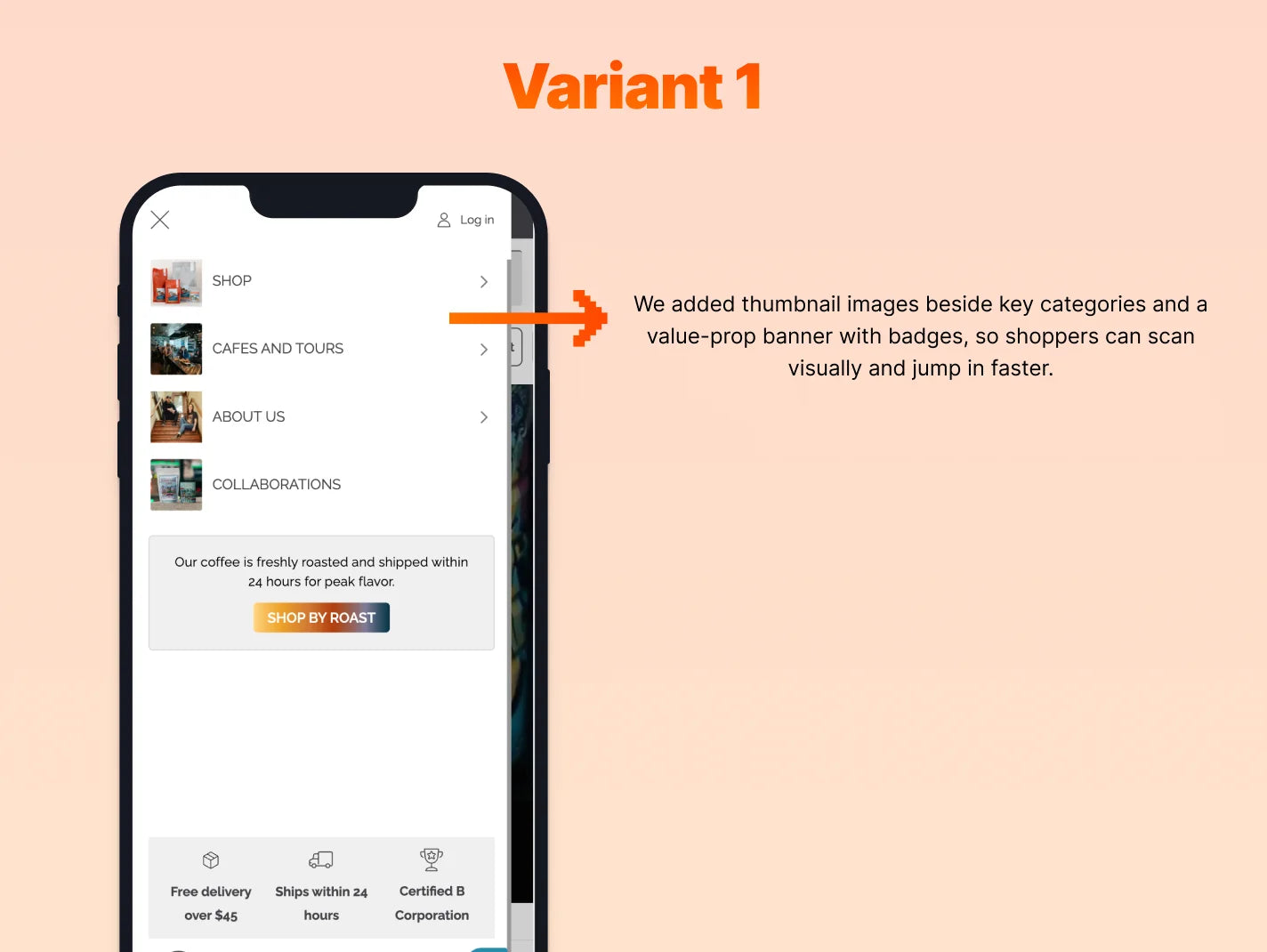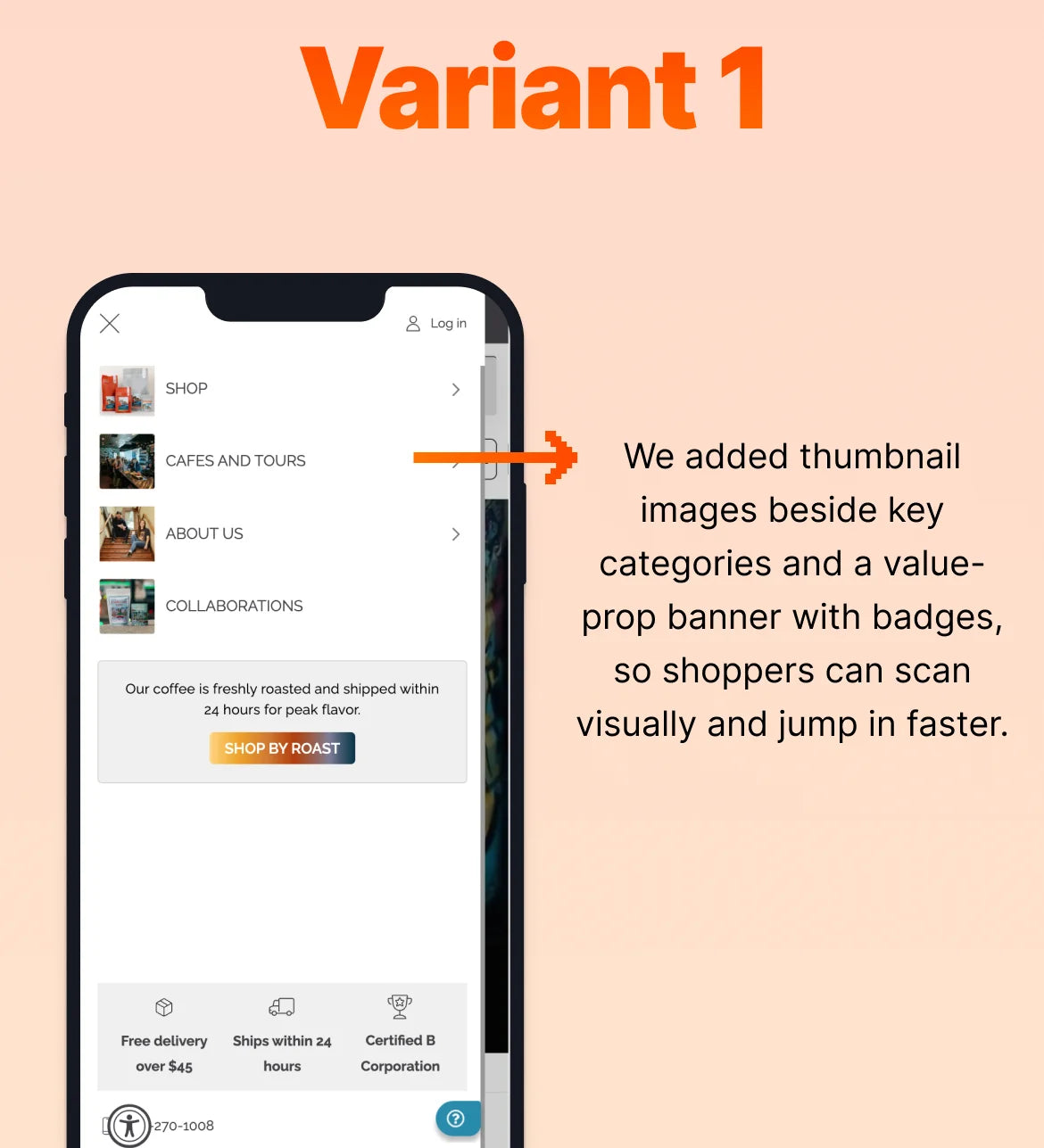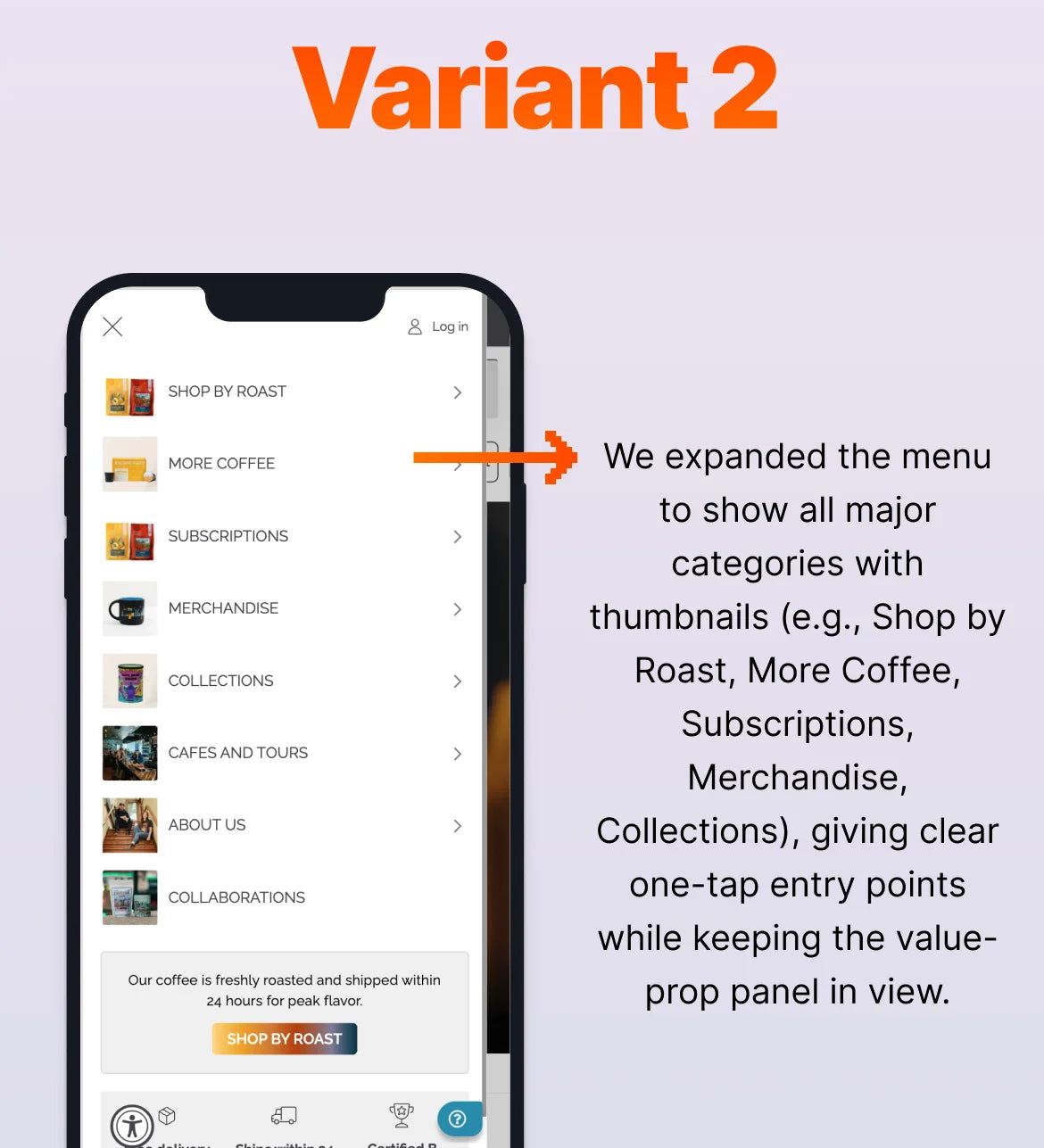 Variant 2 offered a more intuitive and visually-led navigation experience, helping users find what they needed quickly while exposing them to more product categories. This increased exploration contributed to uplifts across both AOV and Subscription RPV.