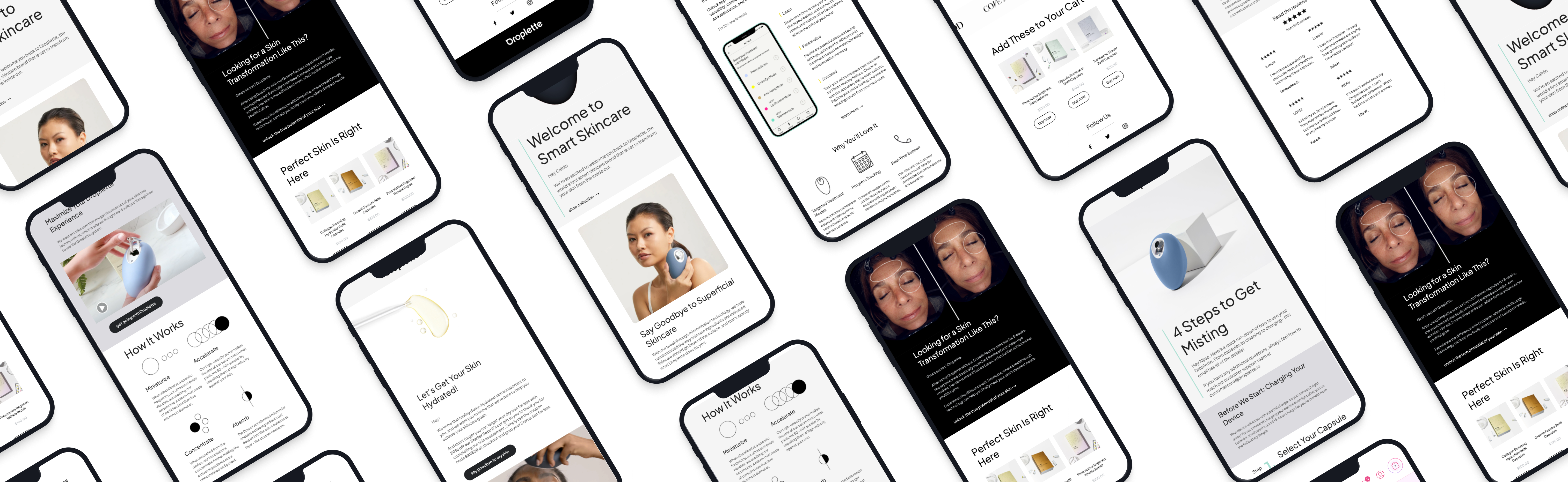 Furthermore, Blend identified the need to guide new visitors through a user journey tailored to Droplette's unique skincare solution. We recommended a revised approach that first educated potential customers about Droplette’s skincare products and then guided them to identify their needs before attempting to get a purchase from them. Additionally, we advised to streamline customer account management to address the lack of a clear path for existing customers to manage their subscriptions.
