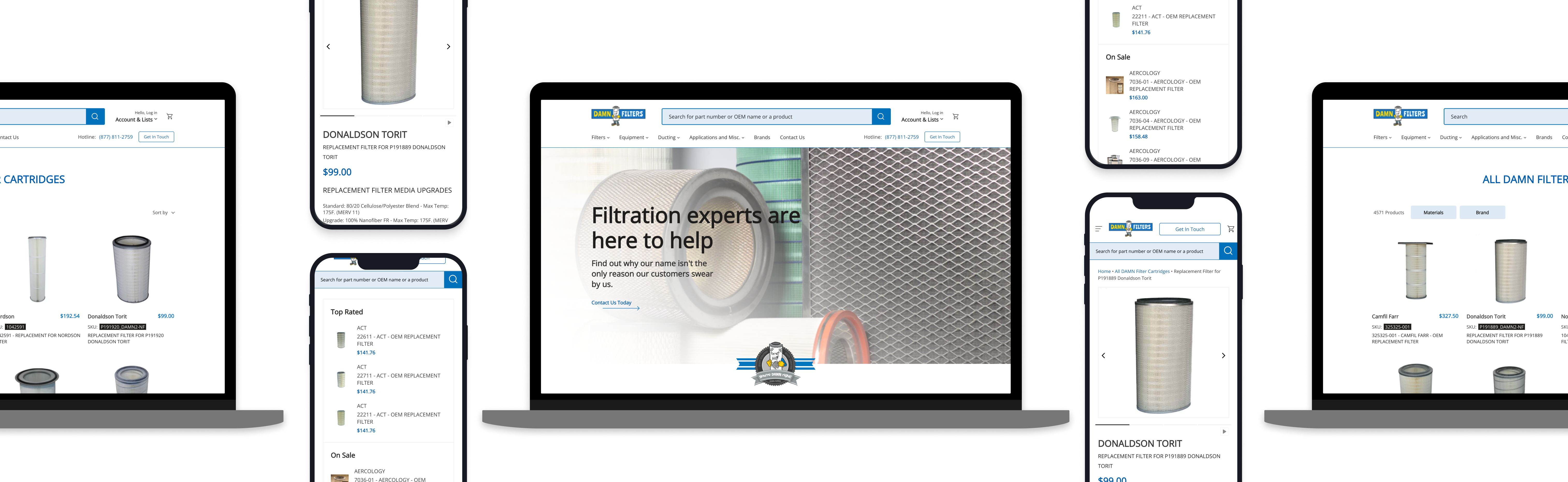 All the data gathered from these reports enabled us to create a new site map and identify any missing user journey holes. With all that complete and identified, a user-centred design using their existing brand guidelines, alongside best practices and the recommendations provided to Damn Filters, a full site redesign with UX in mind was created.