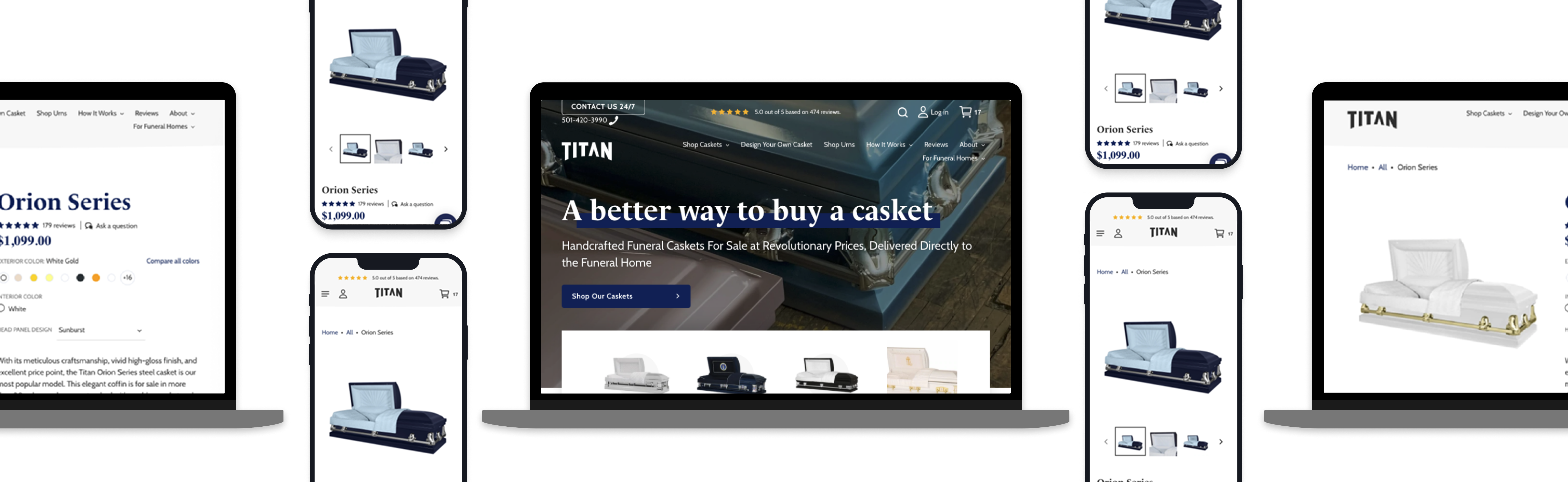Titan Casket came to Blend after viewing what we had created for Brooklyn Bicycles. Titan wanted to have a consistent style for a professional look and feel. They wanted to have a new site that focused on making a casket easier, thus making the customer journey more straightforward and effortless, making them the go-to merchant for caskets online.