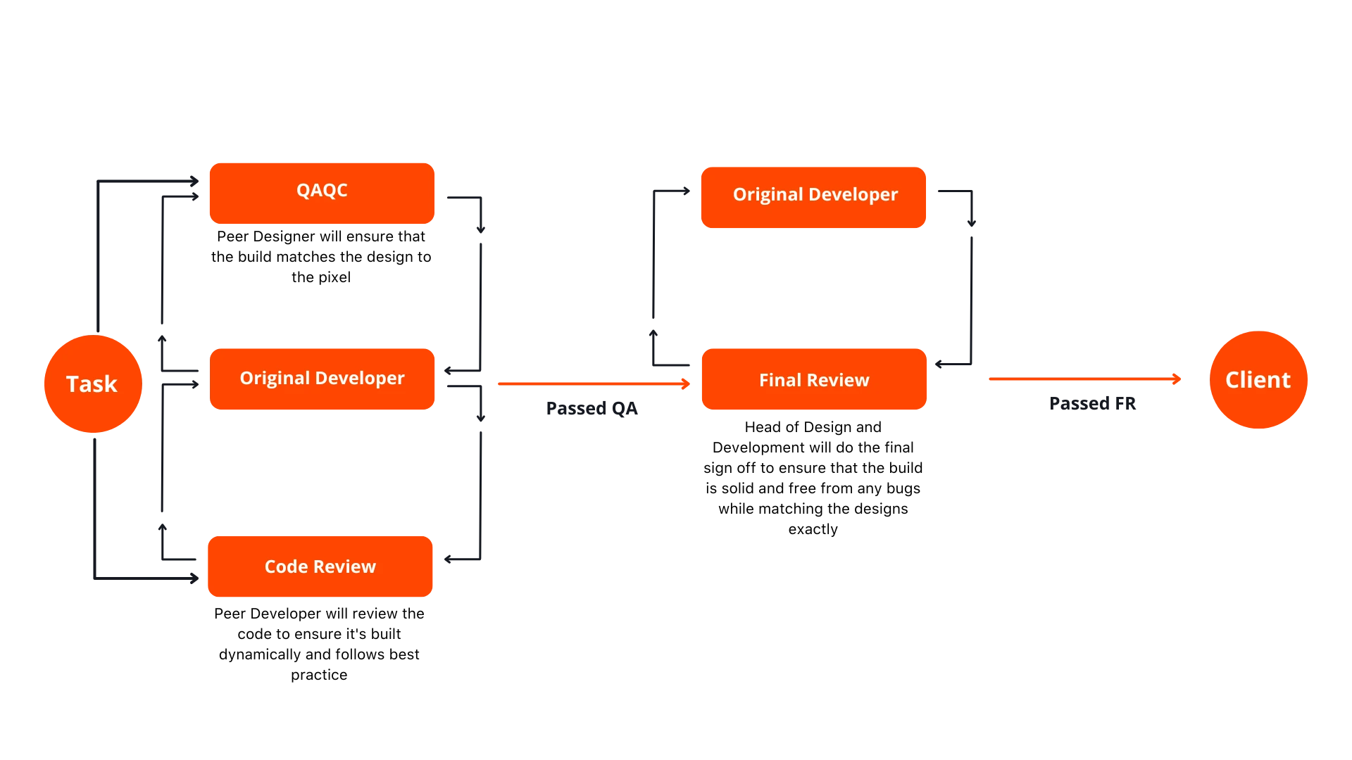 - Rigorous Peer Reviews: During Code Review, every line of code is reviewed by a peer developer to ensure quality, dynamic functionality, while our Design QAQC ensures design accuracy down to the last pixel.